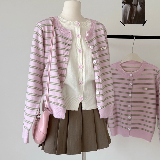 [秋服♡][ドッキングガーデ♡] Ladies / 韓国っぽ ボーダー ドッキング カーディガン ⭐︎+°331