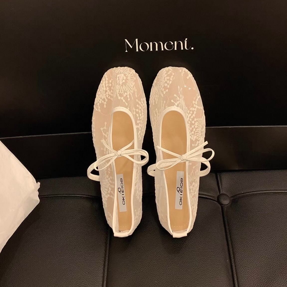 総レースが軽やかな印象のシアーフラットパンプス。バレエシューズのような丸いシルエットが可愛い♡