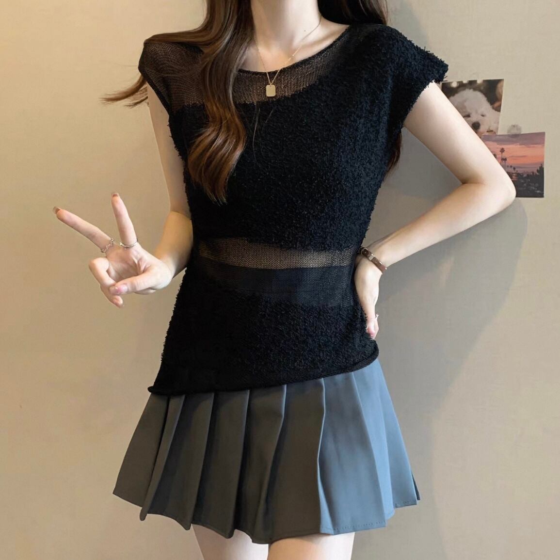 Ladies / S〜L・5色展開 / ヘルシーな肌見せ シースルー サマーニットトップス ⭐︎+°057