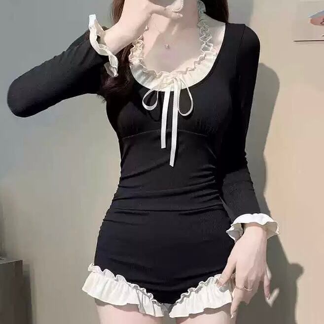 Ladies / S〜XL展開 / ハッシュガード一体型 フリル ドッキング ワンピース水着