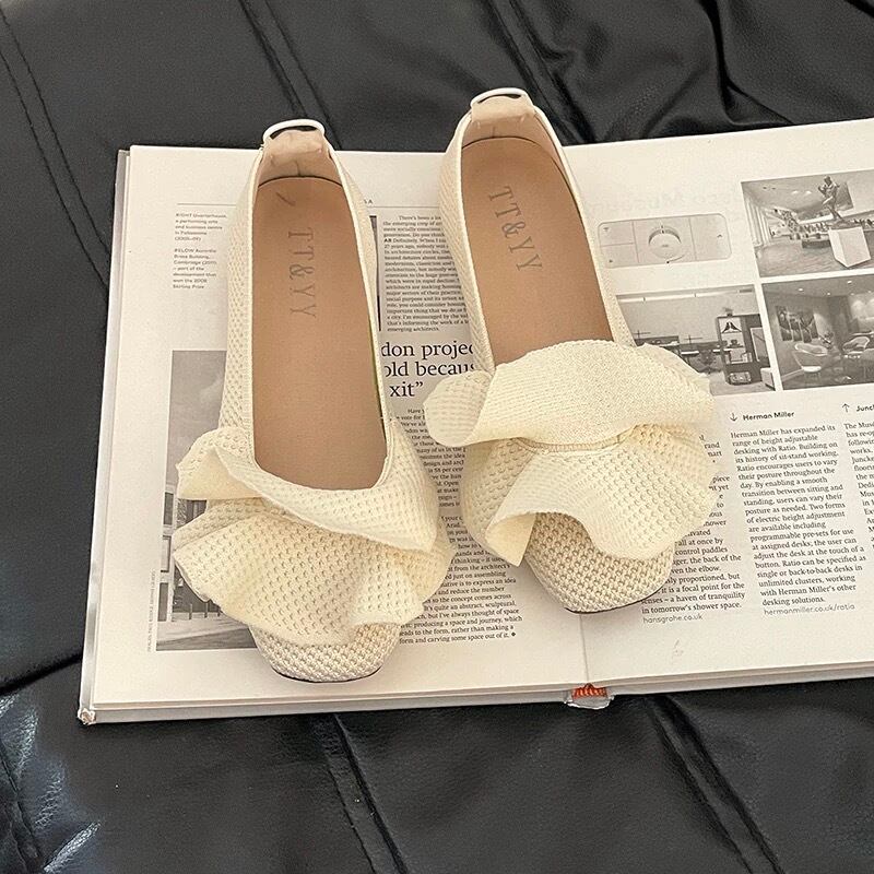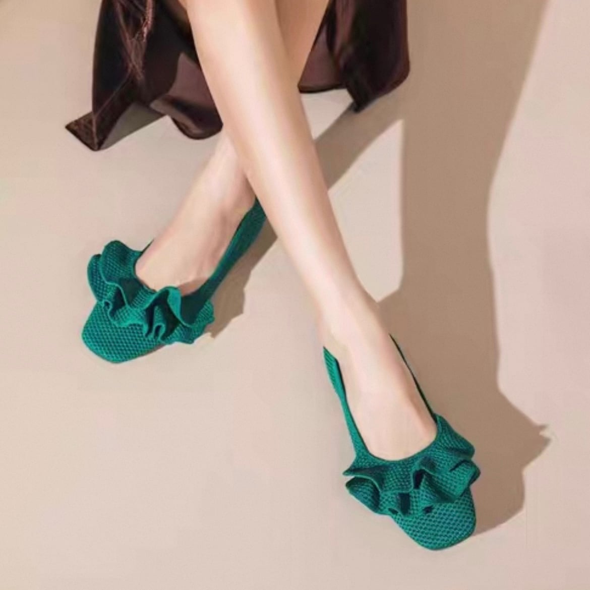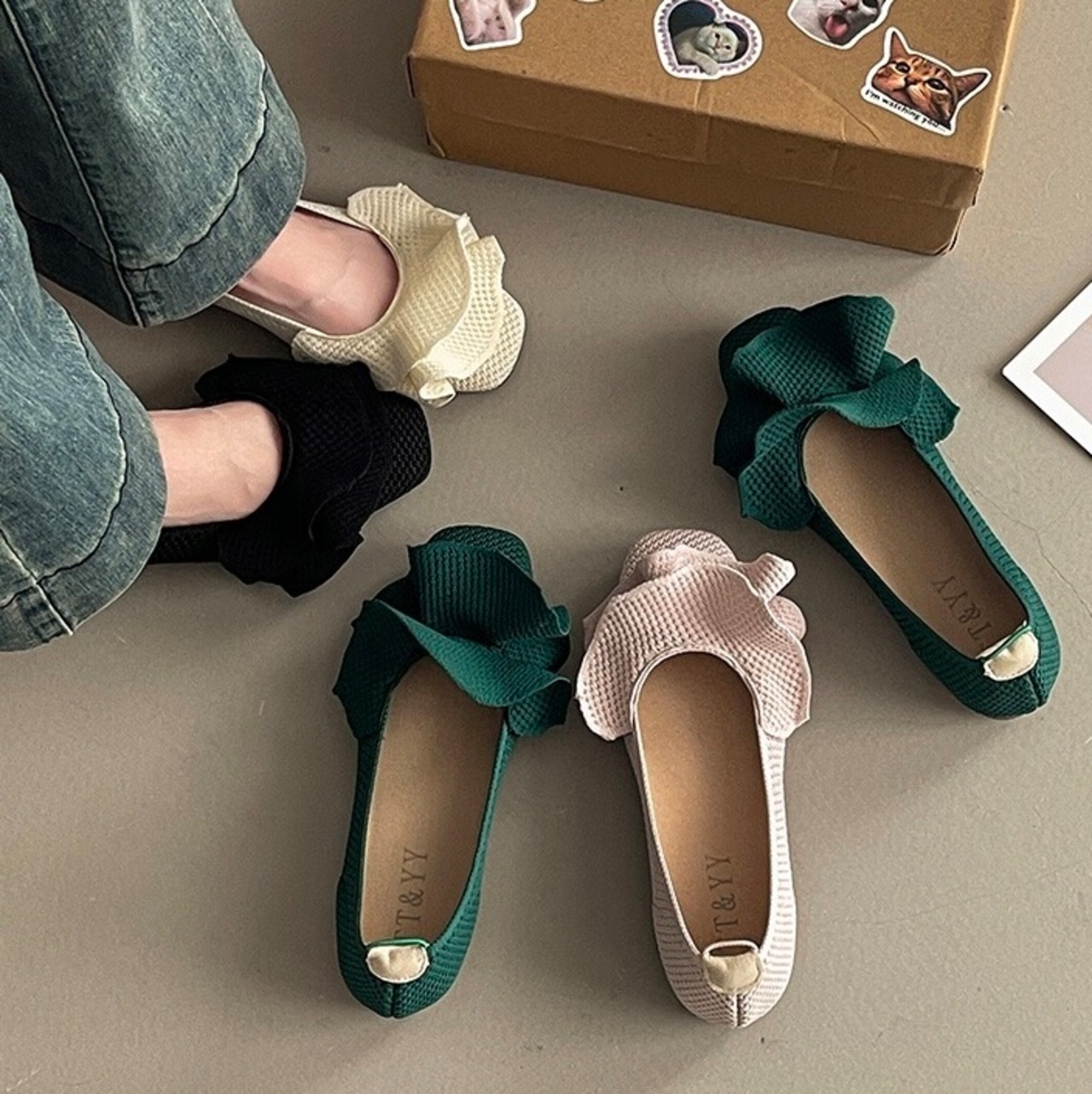 Ladies / 22.5〜25cm・4色展開 / ビッグフリル 柔軟フィットフラットパンプス ⭐︎+°031