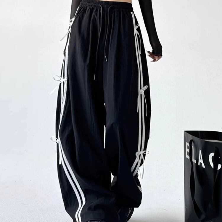 Ladies / S〜2XL展開 / サイドリボン 極太ワイドジャージパンツ ⭐︎+°086