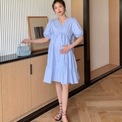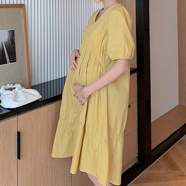 マタニティ / Ladies / M〜2XL・5色展開 / パフスリーブ ワントーン 涼感 ワンピース ⭐︎+°173