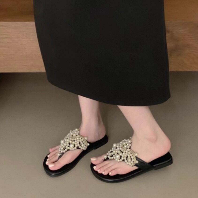 Ladies / 22.5〜25cm・3色展開 / パールビジュー 華やか フラットサンダル ⭐︎+°176