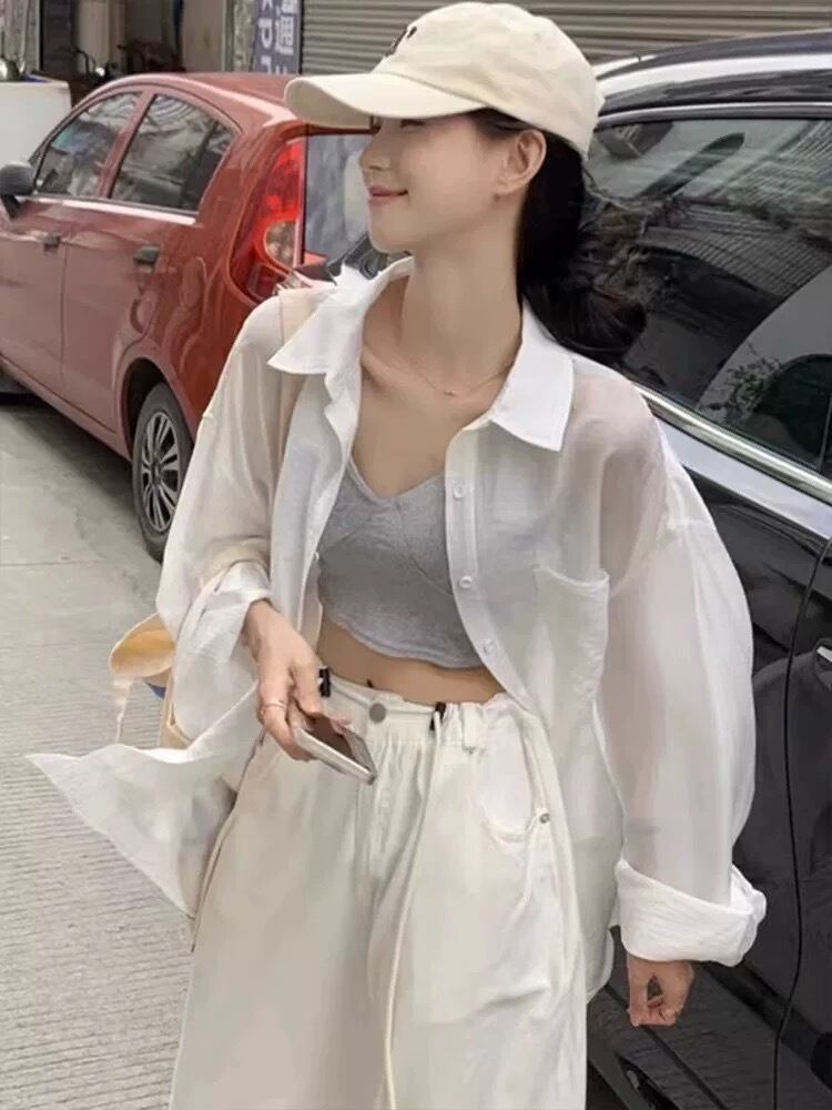 Ladies / S〜2XL・2色展開 / 程よい透け感 オーバーサイズ シアーシャツ ⭐︎+°207