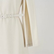 長袖部分にファスナーがあり、開けるとケープ袖のような違った装いになるフォーマルワンピース。