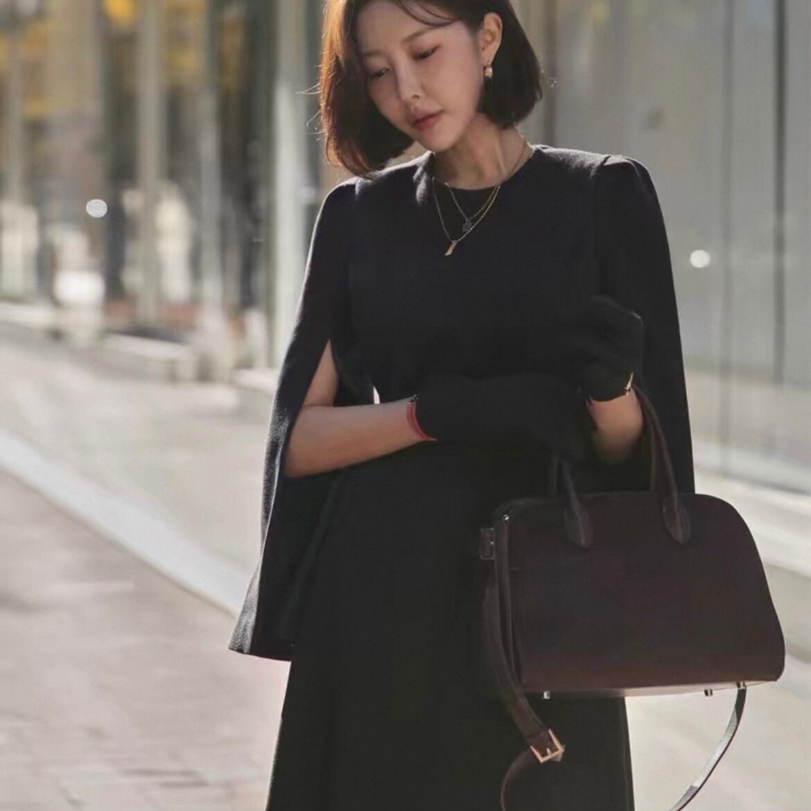 Ladies / 2色展開 / 長袖 or ケープ袖 2way仕様 シンプル フォーマルワンピース ⭐︎+°027