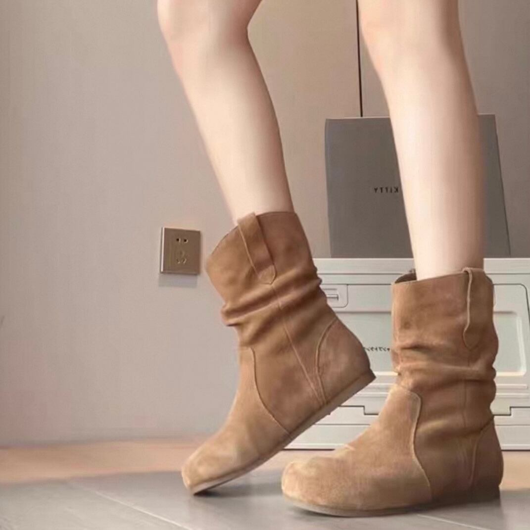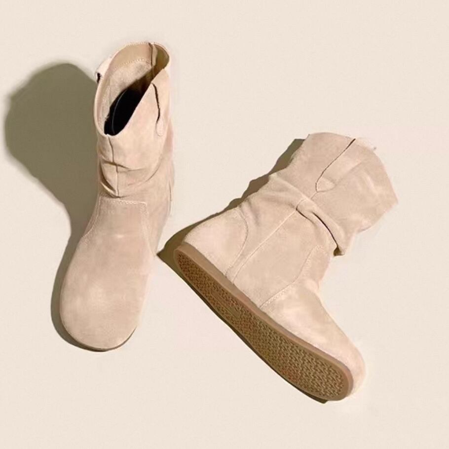 Ladies / 22.5〜25cm・2色展開 / 柔軟 くしゅくしゅ ショート丈 フラットブーツ ⭐︎+°037