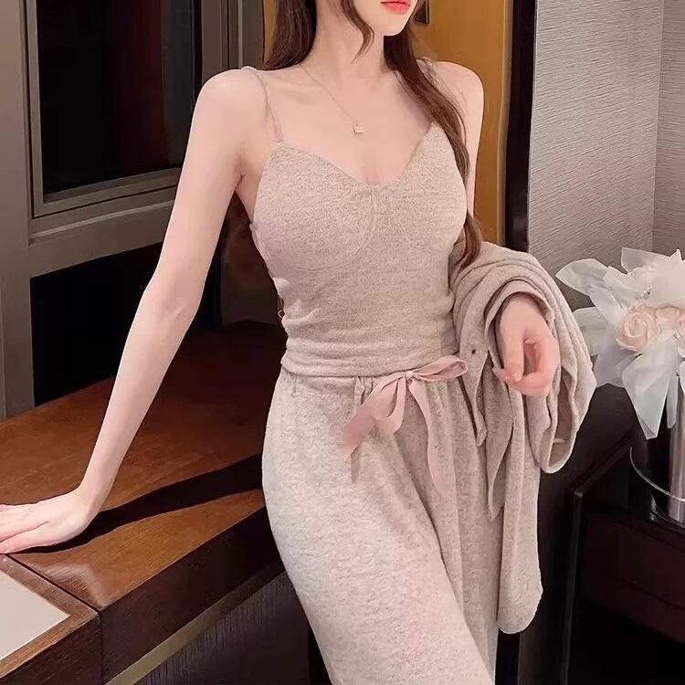 Ladies / M〜2XL・2色展開 / ソフトカップキャミ×カーディガン×ロングパンツ 3点セット ルームウェア ⭐︎+°050