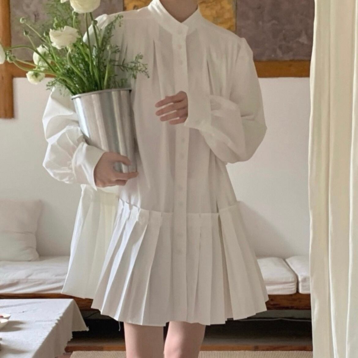 プリーツシャツワンピースで1枚で可愛く♡