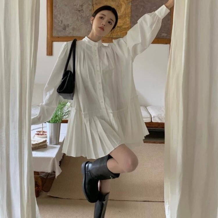 [秋新作♡][シャツワンピ♡]Ladies / M〜3XL展開 / プリーツ シャツ ミニワンピース ⭐︎+°316