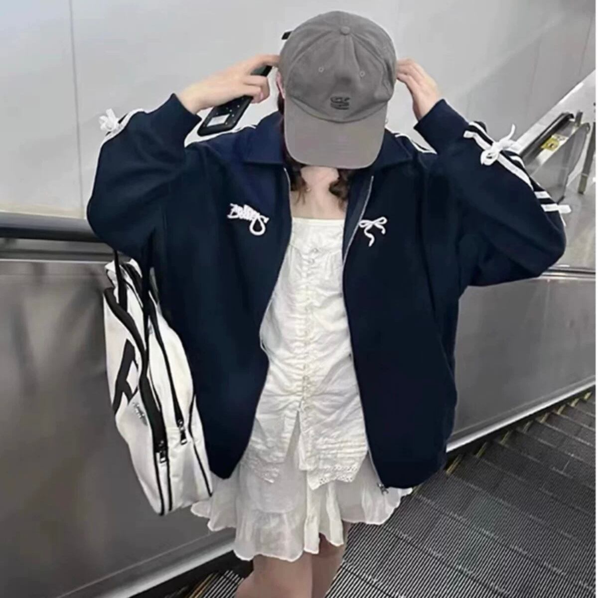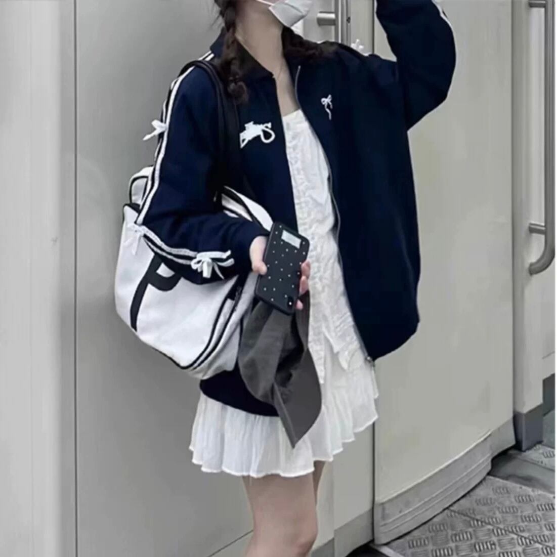 ジャージ素材にリボンアレンジされたおしゃれジャケット♡ 自己アレンジのようなオリジナル感を出せる1着♡