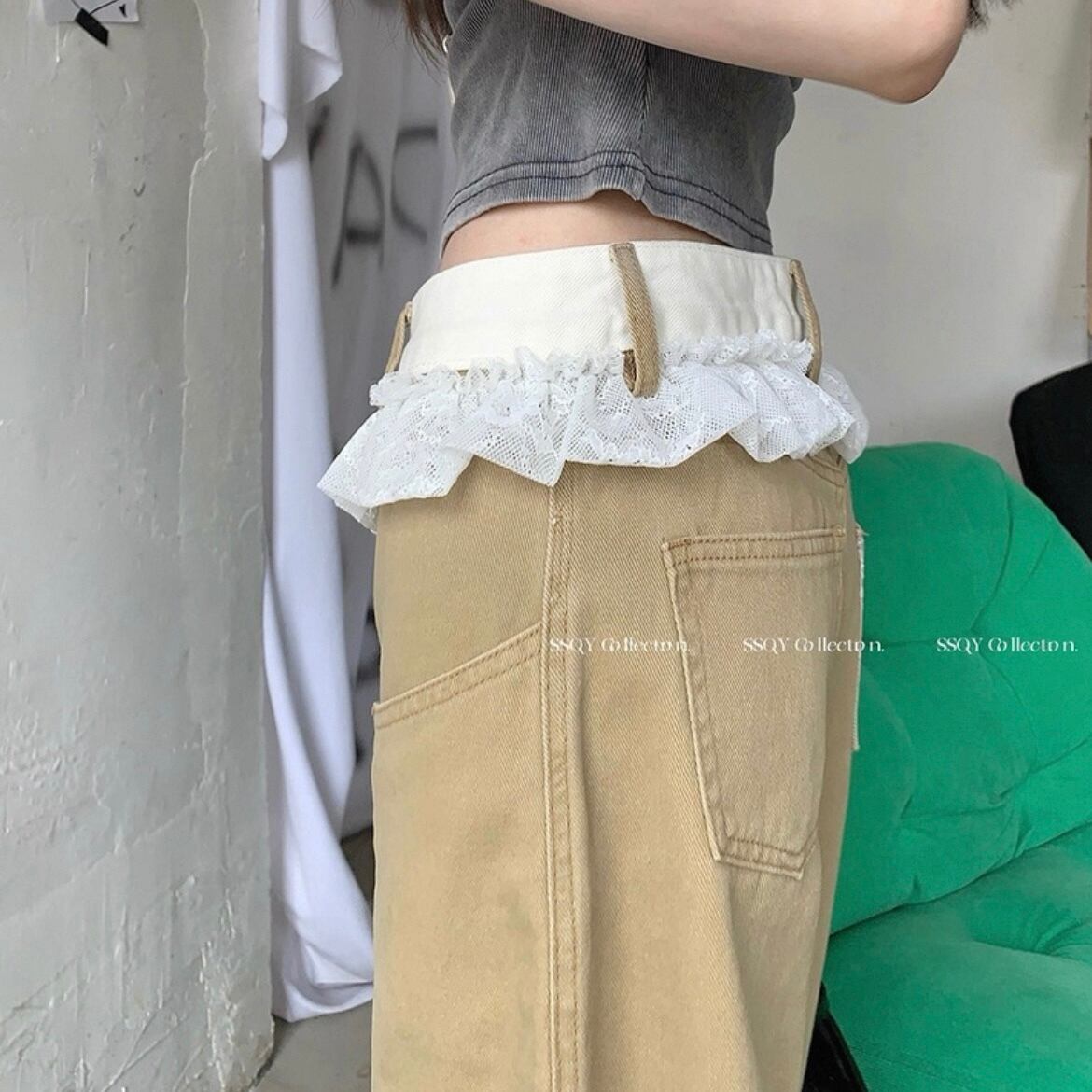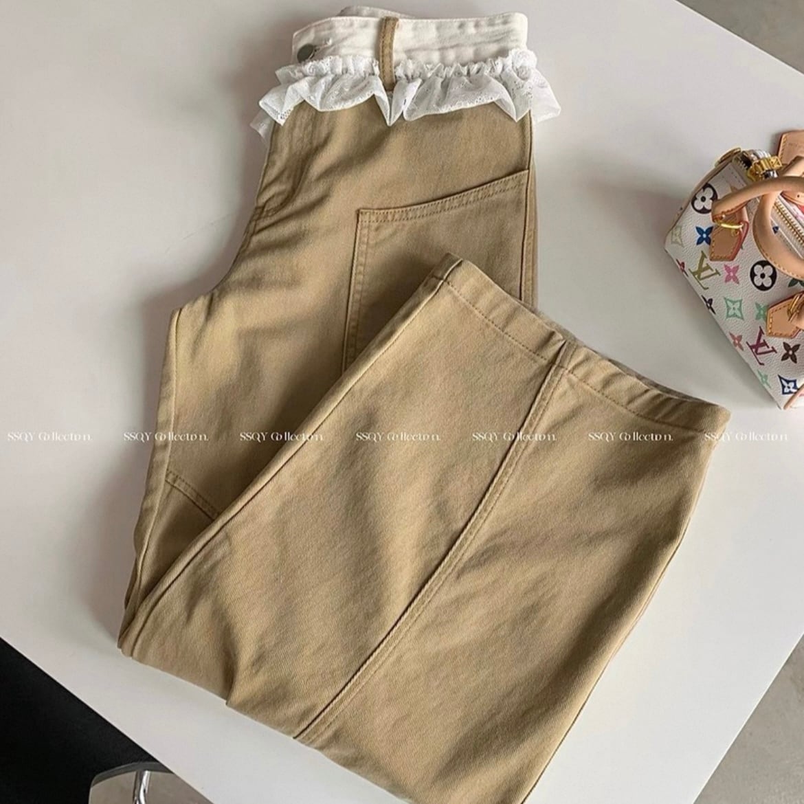 [秋服♡][オールシーズン♡]Ladies / S〜3XL展開 / ウエストフリルレース チノパン ワイドパンツ ⭐︎+°320