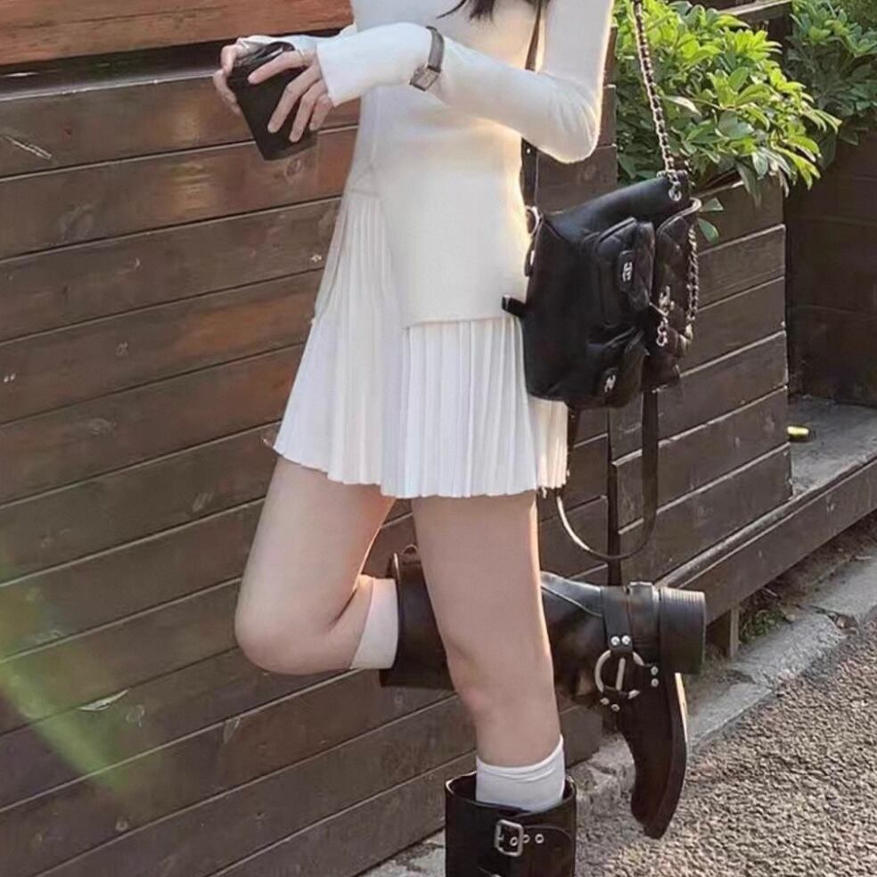 [秋冬♡][安全パンツ付き♡][プリーツミニ♡] Ladies / S〜2XL・4色展開 / ニット プリーツミニスカート 安心の安全パンツ付き ⭐︎+°392