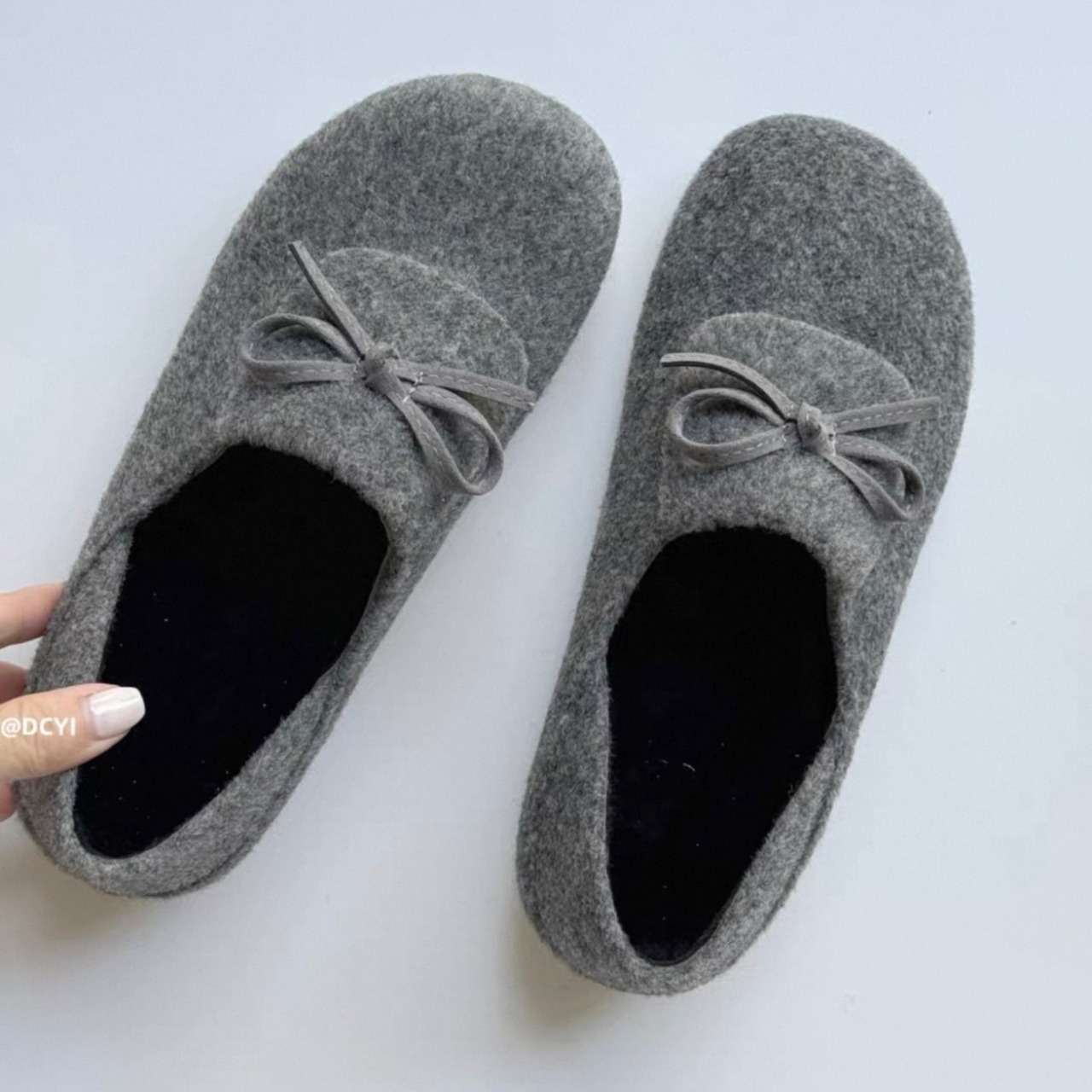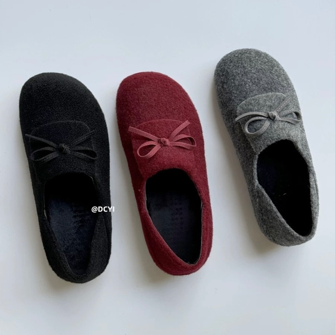[秋冬♡][22.5/23/23.5/24/24.5/25cm♡] Ladies / 22.5〜25cm・3色展開 / フェルト風 ラウンドフォルム フラットシューズ ⭐︎+°401