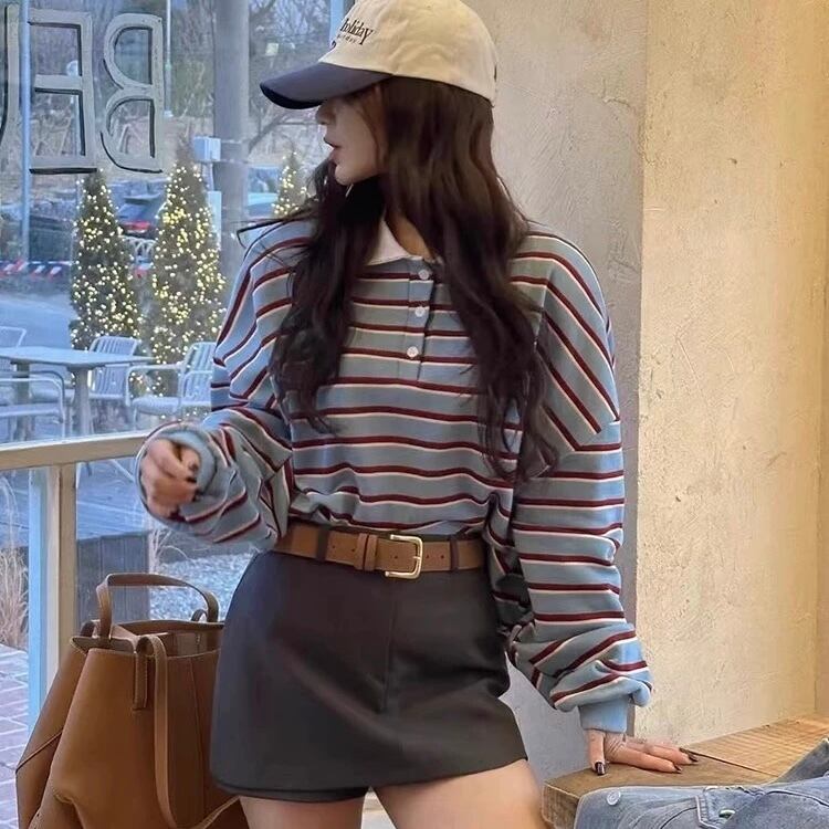 [秋服♡][華奢見えポロシャツ♡] Ladies / 3色展開 / ビッグシルエット オーバーサイズ 長袖ポロシャツ ⭐︎+°429