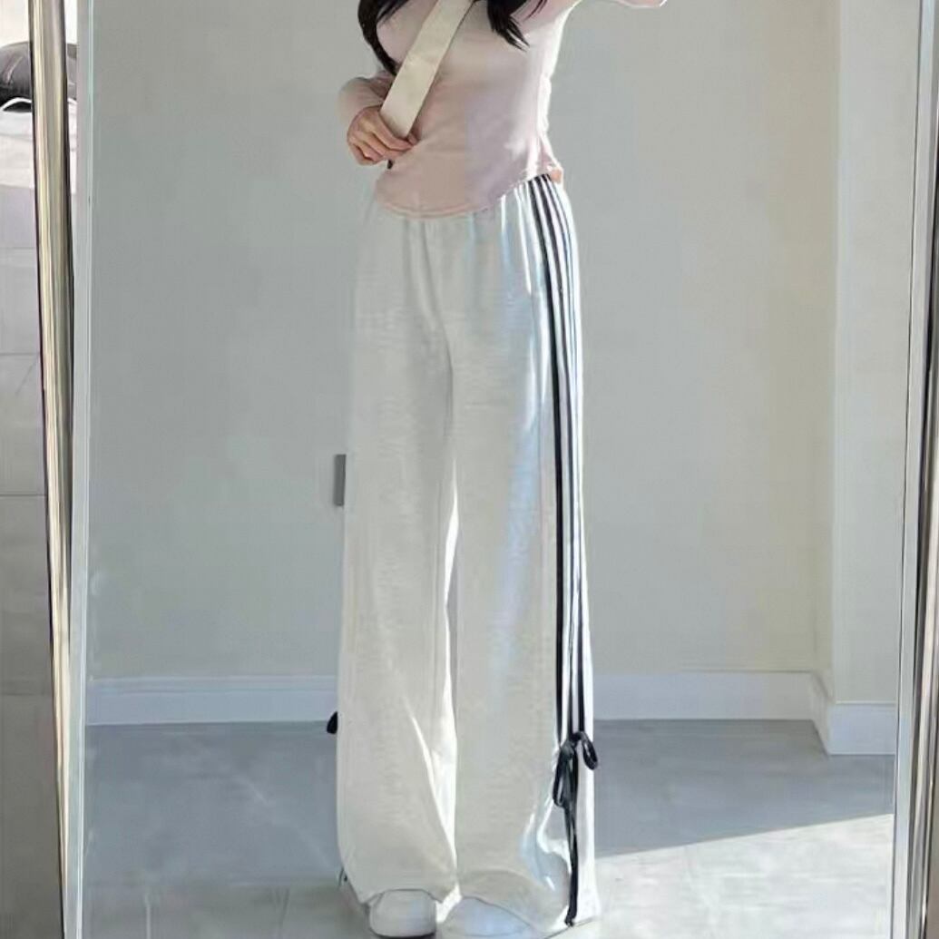 [秋服♡][スウェット] Ladies / S〜XL・3色展開 / ライン×リボン コットン スウェットパンツ ⭐︎+°235
