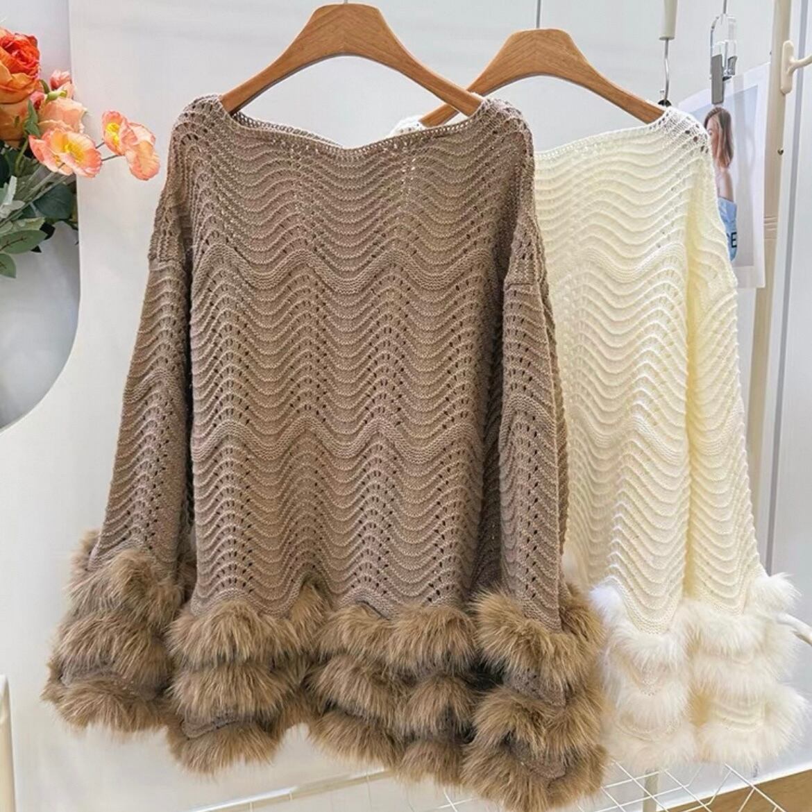 フェイクファーとニットのコラボがめっちゃ可愛いミニワンピース。デニム等のボトムスと合わせても可愛い♡