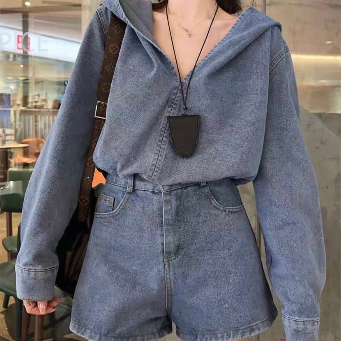 [秋服♡][デニムパーカー♡] Ladies / S〜XL展開 / ショート丈 グロップド丈 デニムパーカー ⭐︎+°351