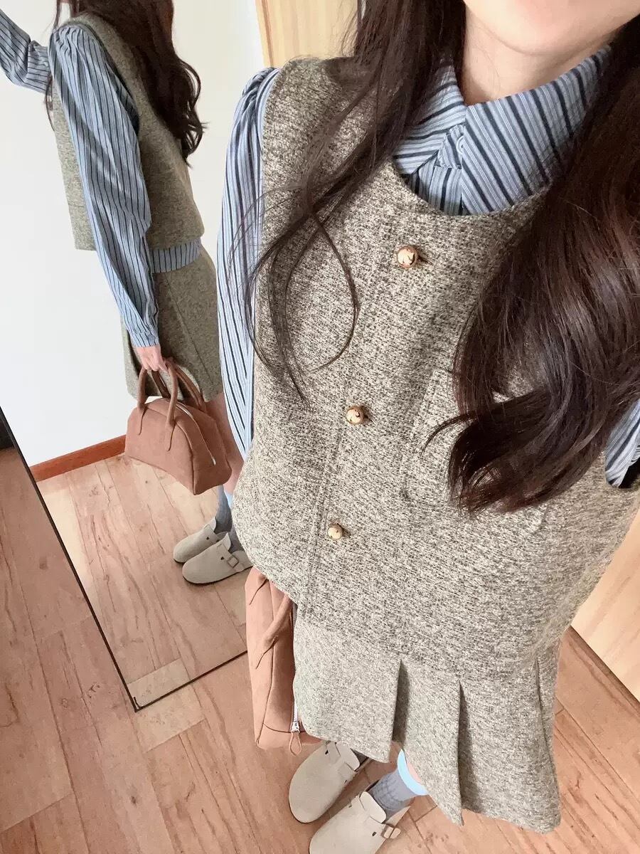 [秋服♡][3点セットアップ♡] Ladies / S〜XL展開 / ブラウス × ベスト × プリーツミニスカート セット ⭐︎+°396