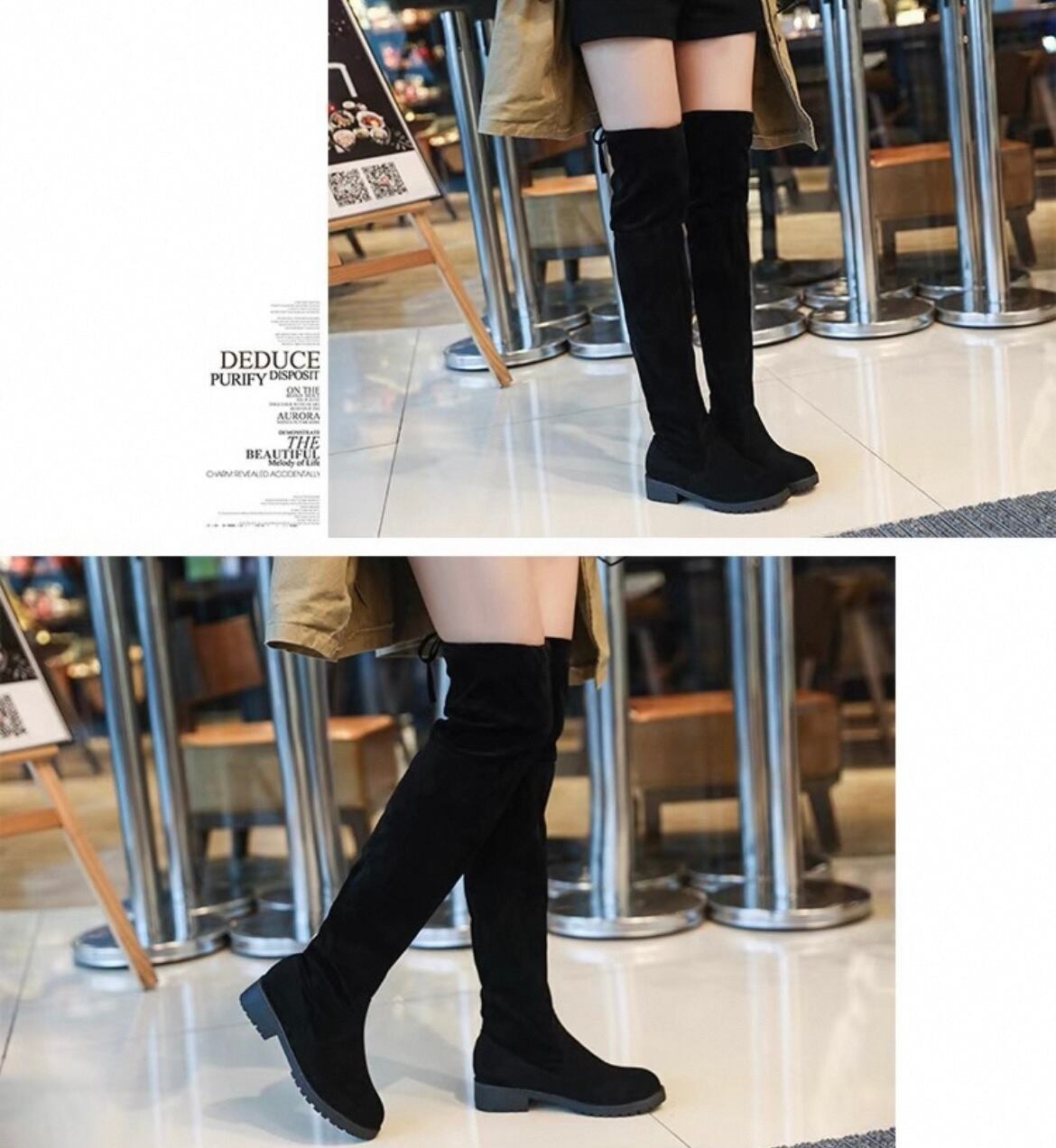 [秋靴♡][ニーハイブーツ♡] Ladies / 22.5〜25.5cm展開 / スウェード生地 ブラック ニーハイブーツ ⭐︎+°002