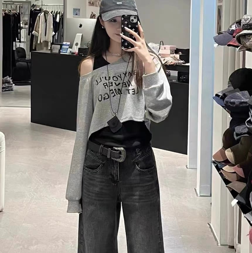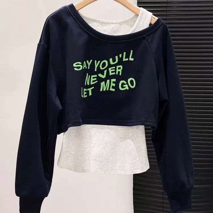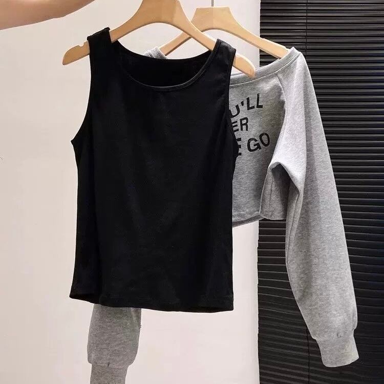 [秋服♡][ペアトップス♡] Ladies / S〜2XL・2色展開 / オフショルトレーナー × ランニング セットアップトップス ⭐︎+°013