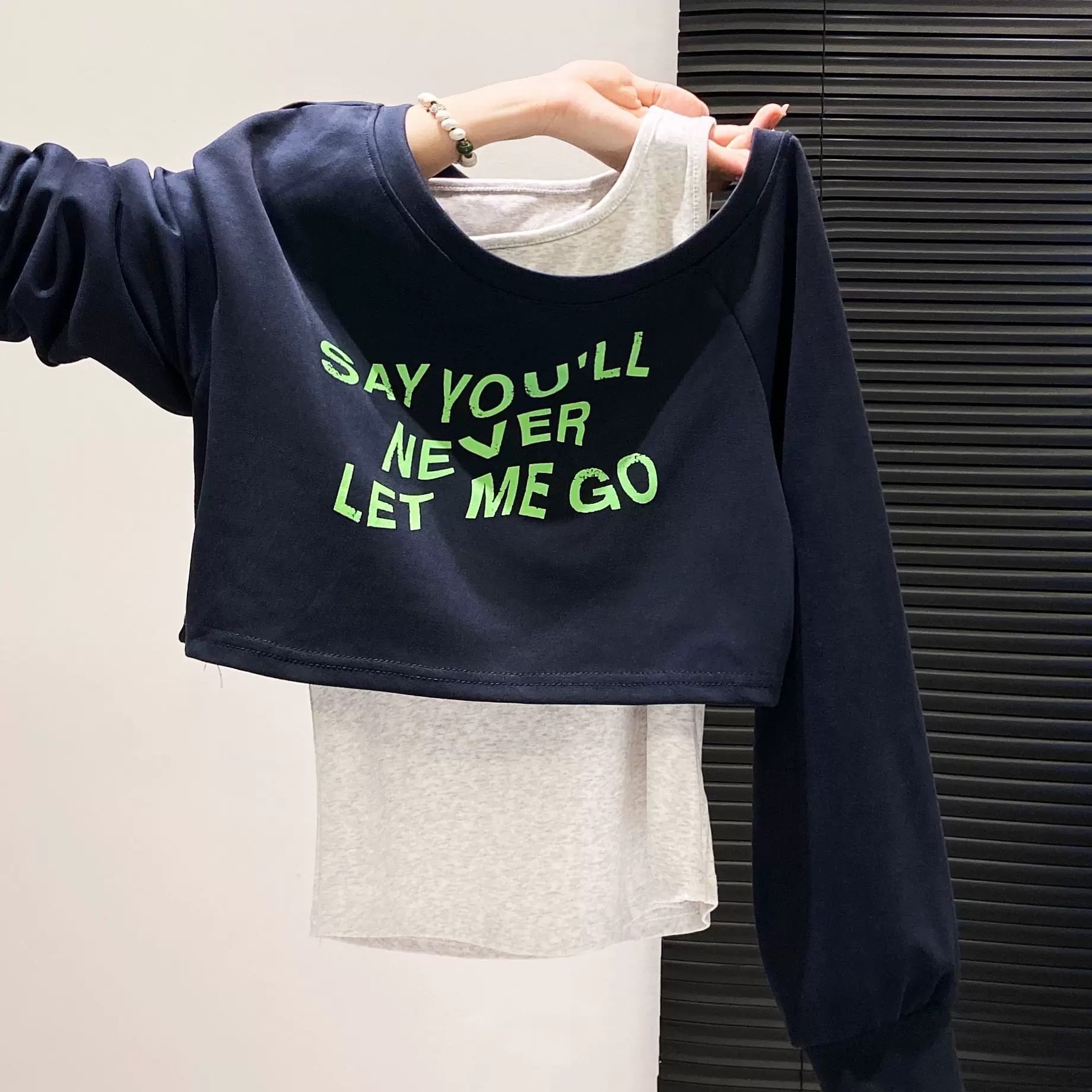 ロゴプリントトレーナーとランニングトップスのセットアップ。スポーティーさとカジュアルさを兼ね揃えたトップス♡