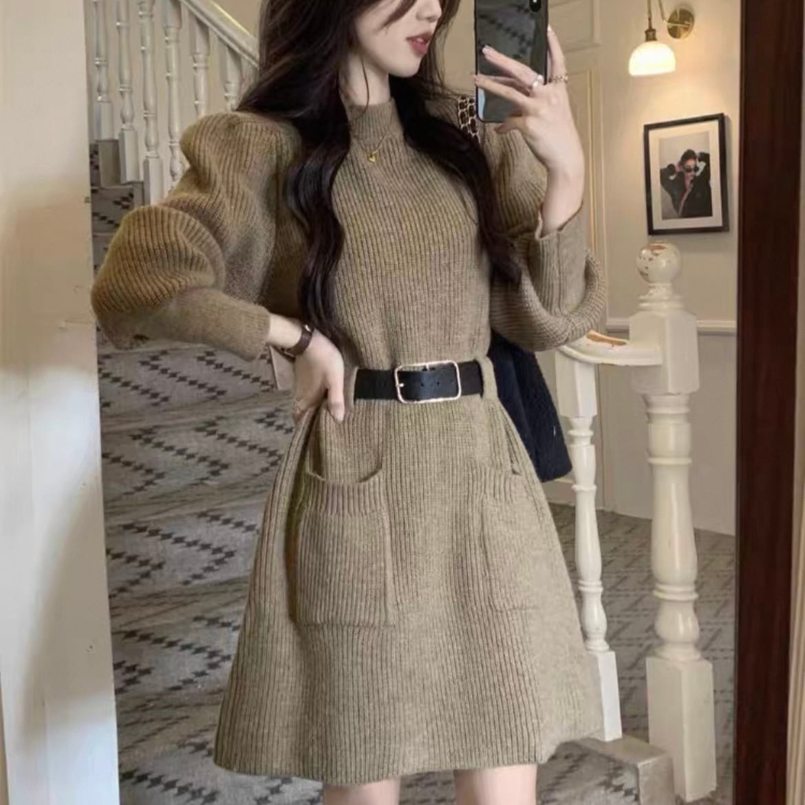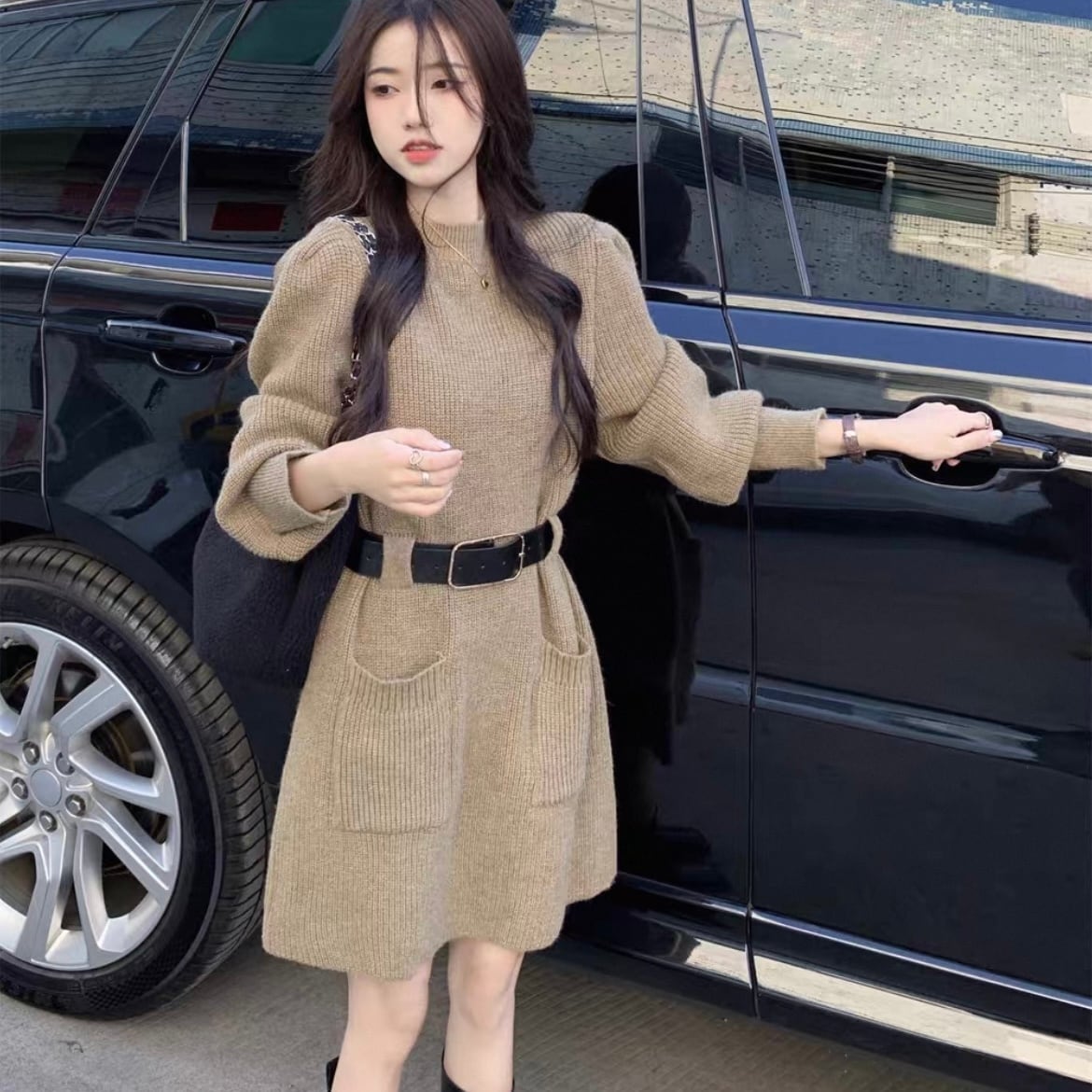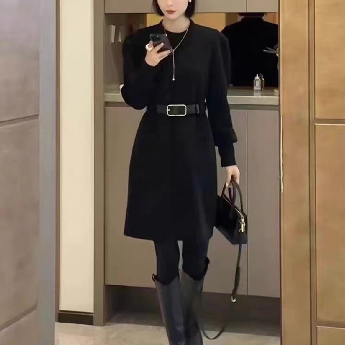 [秋冬服♡][ニットワンピ♡] Ladies / S〜2XL・3色展開 / ベルトセット ニットミディアムワンピース ⭐︎+°023