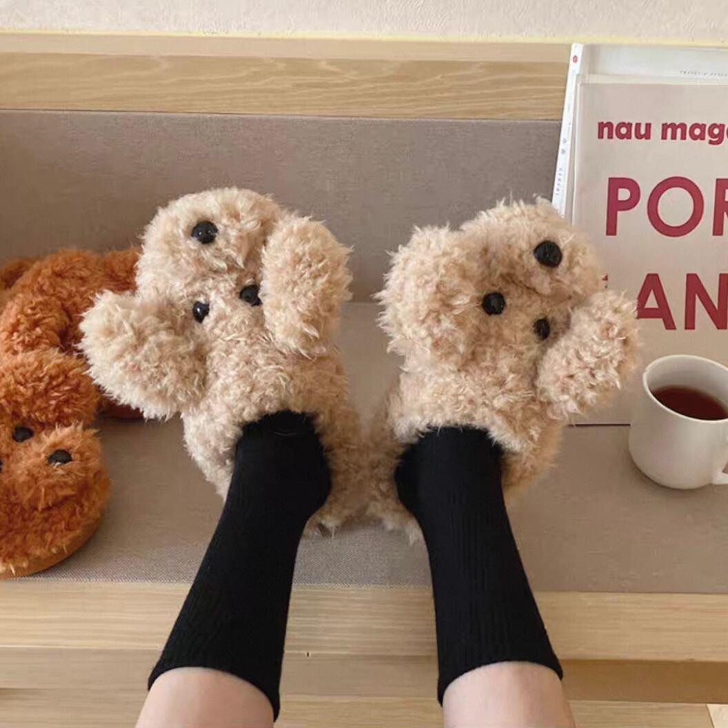 ふわもこ素材でしっかり温かいお部屋スリッパ♡ トイプードル、マルチーズ、ビションフリーゼなど、わんちゃん好きにはたまらないアイテムです♡