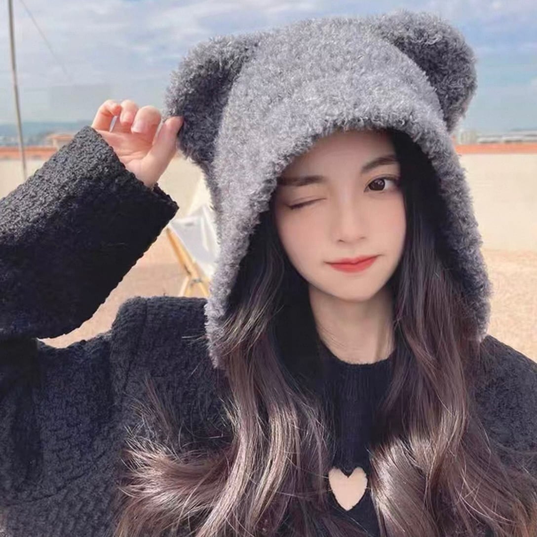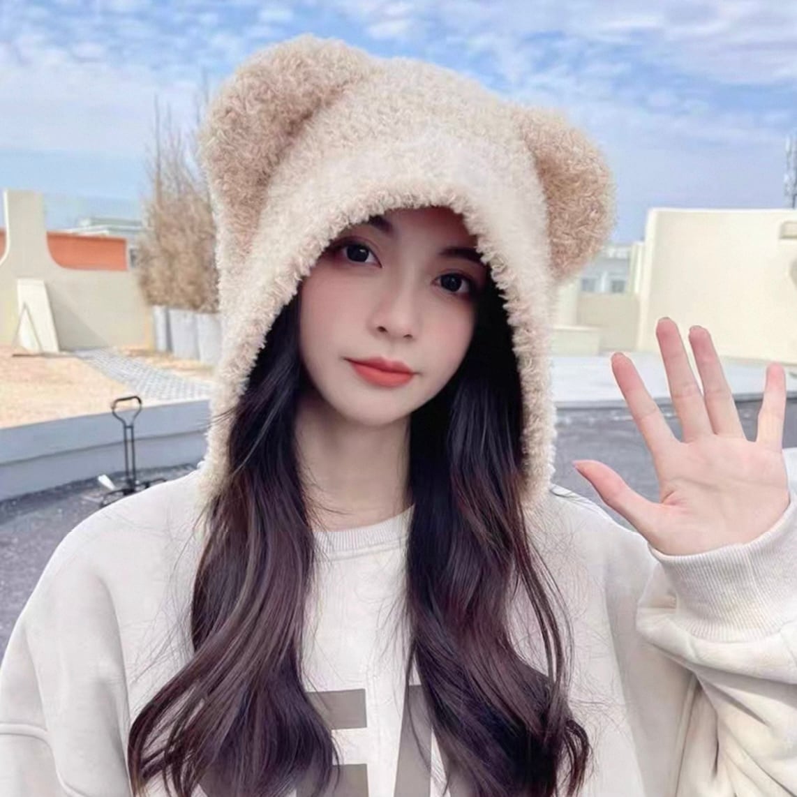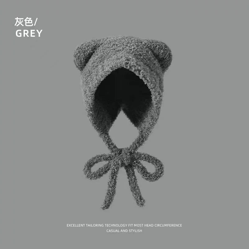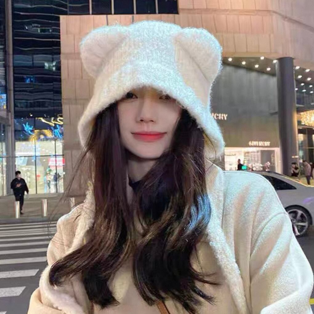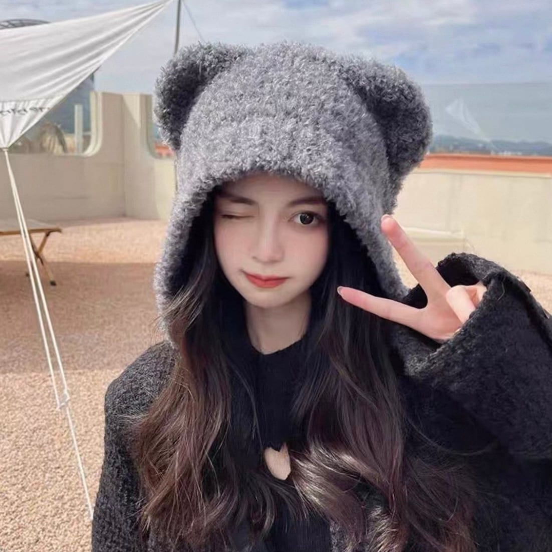 [くまみみ♡][マシュマロニット帽♡] Ladies / 4色展開 / フードのように被るだけ くまみみ ニット帽 ⭐︎+°058