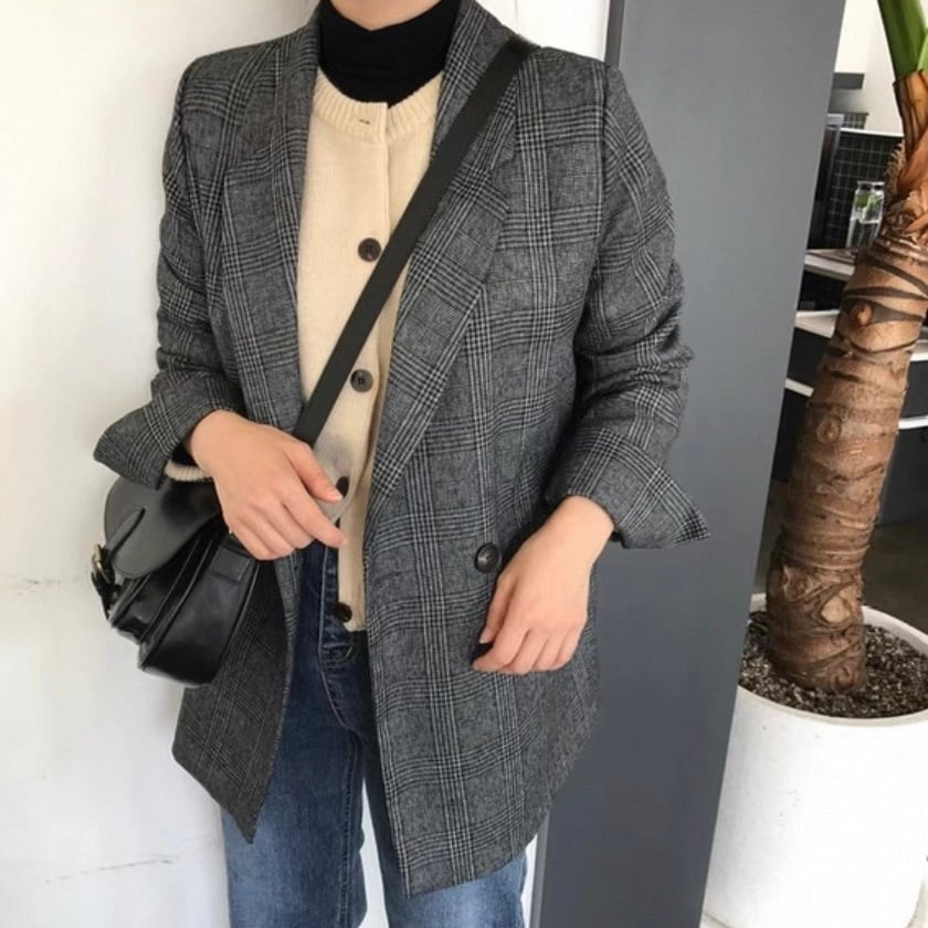 [秋冬アウター♡][ジャケット♡] Ladies / S〜XL・2色展開 / チェック柄 テーラードジャケット ⭐︎+°060