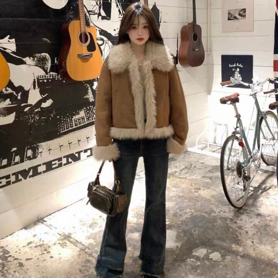 [フェイクファー♡][秋冬アウター♡] Ladies / S〜XL展開 / ファー × レザー 極暖 ショート丈 アウター ⭐︎+°088