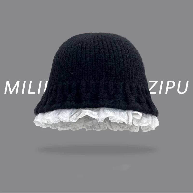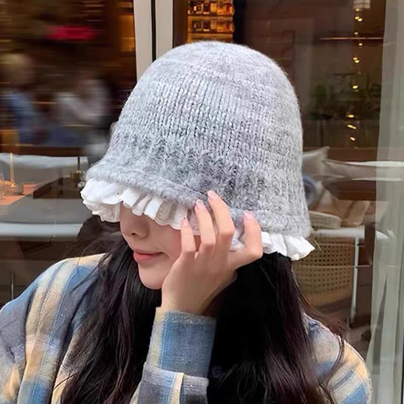 ニットバケットハットにコットンレースがドッキングされたおしゃれアイテム♡