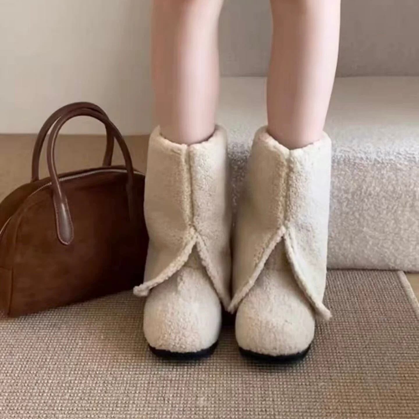 折り返しデザインがボリューミィなムートンフラットブーツ♡ もこもこの存在感が温かくて冬かわいいブーツです♡