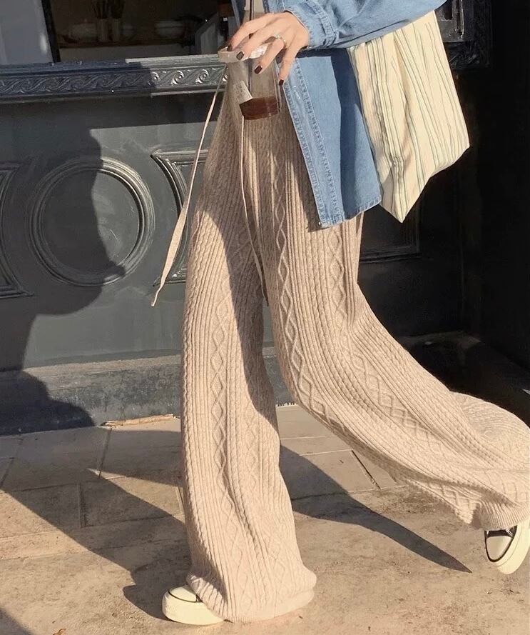 [ニットパンツ♡][秋冬服♡] Ladies / S〜XL・3色展開 / ケーブル編み ニット あったか ワイドパンツ ⭐︎+°136