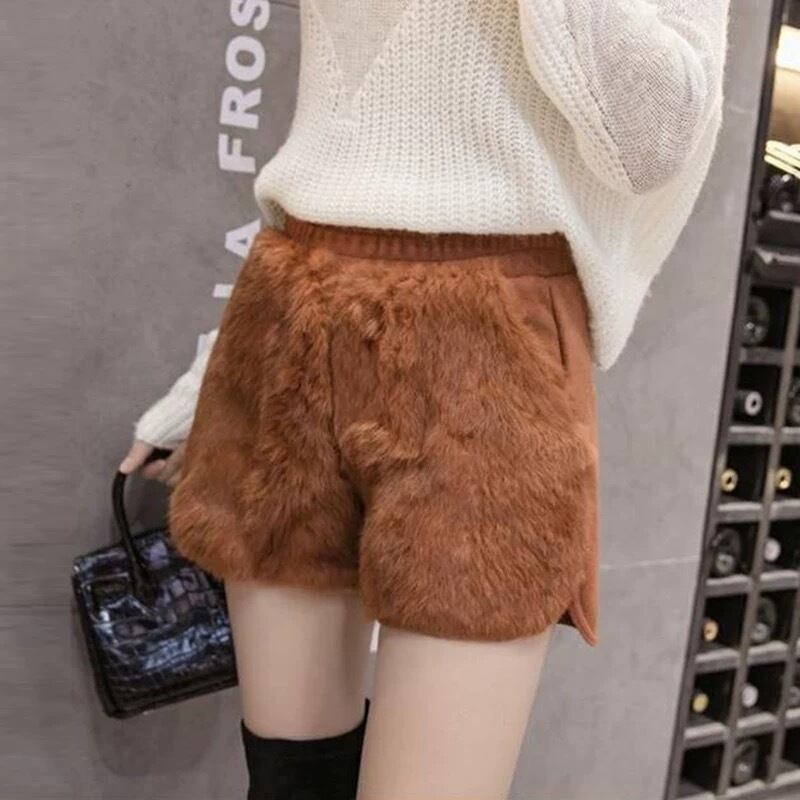 [秋冬服♡][ファータッチ♡] Ladies / S〜3XL・2色展開 / フェイクファータッチ ショートパンツ ⭐︎+°153