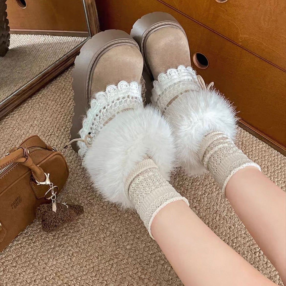 フェイクファーとコットンレースのコラボがめちゃかわブーツ♡ 厚底だから脚長効果も♡