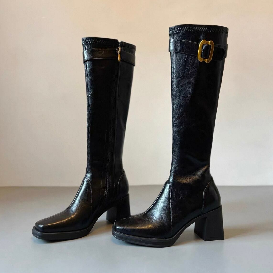 高見え必至のフェイクレザーブーツ。スタンダードなシンプルデザインが長く愛用いただけるロングブーツ♡
