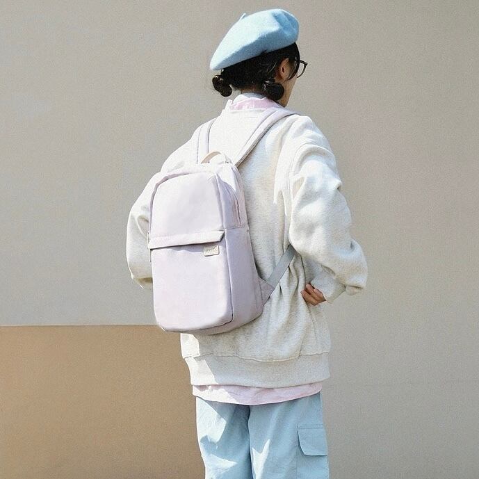 透き通るようなパステルカラーが可愛いリュック。ノートパソコンを入れても防振クッション構造で安心◎ポケットも大きく、スリムなのに大容量でとっても便利♡