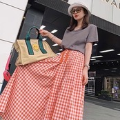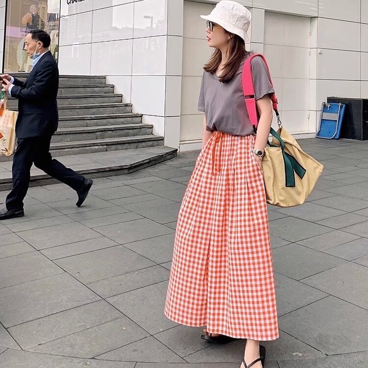 Ladies / S〜2XL・2色展開 / ギンガムチェック ワイドキュロットパンツ ⭐︎+°154