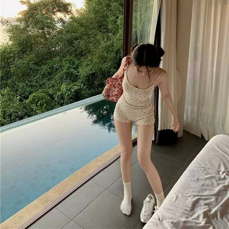 Ladies / S〜XL展開 / 小花柄 ロンパースタイプ ワンピースルームウェア ⭐︎+°258