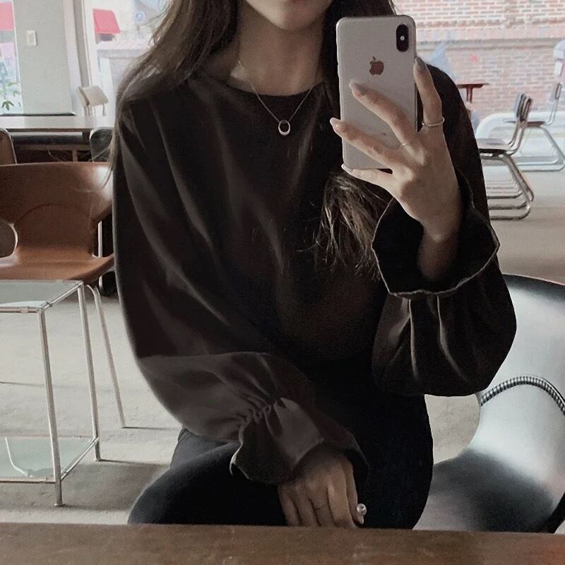 Ladies / S〜XL・2色展開 / ロングパフスリーブ シンプル ブラウス ⭐︎+°136