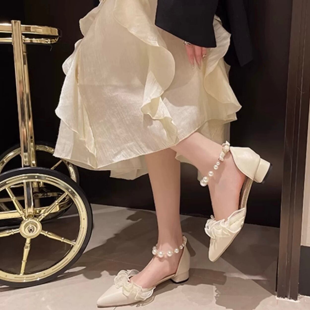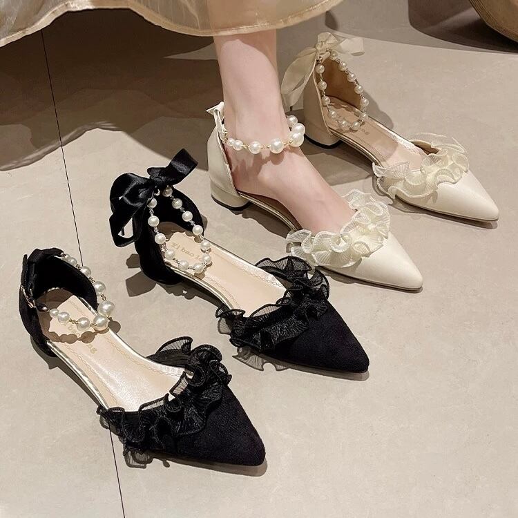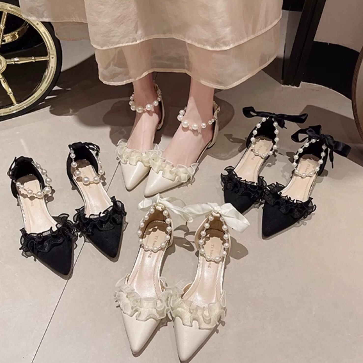 Ladies / 22.5〜24.5cm・2色2種展開 / ビジューストラップ フラットパンプス ⭐︎+°075