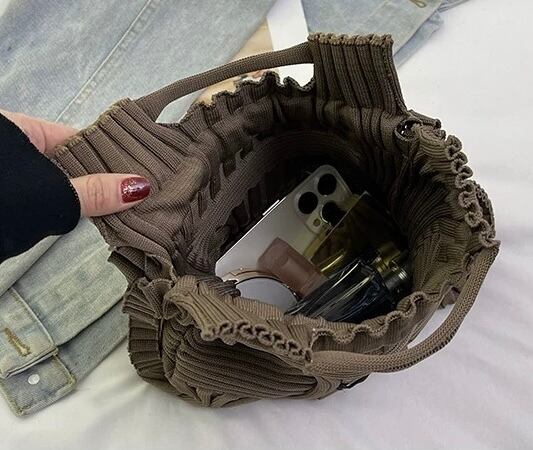 フリルのようなニットのデザイン性の高いハンド&リュック2wayバッグ。伸縮性もあるから小ぶりな割に便利なバッグに♡